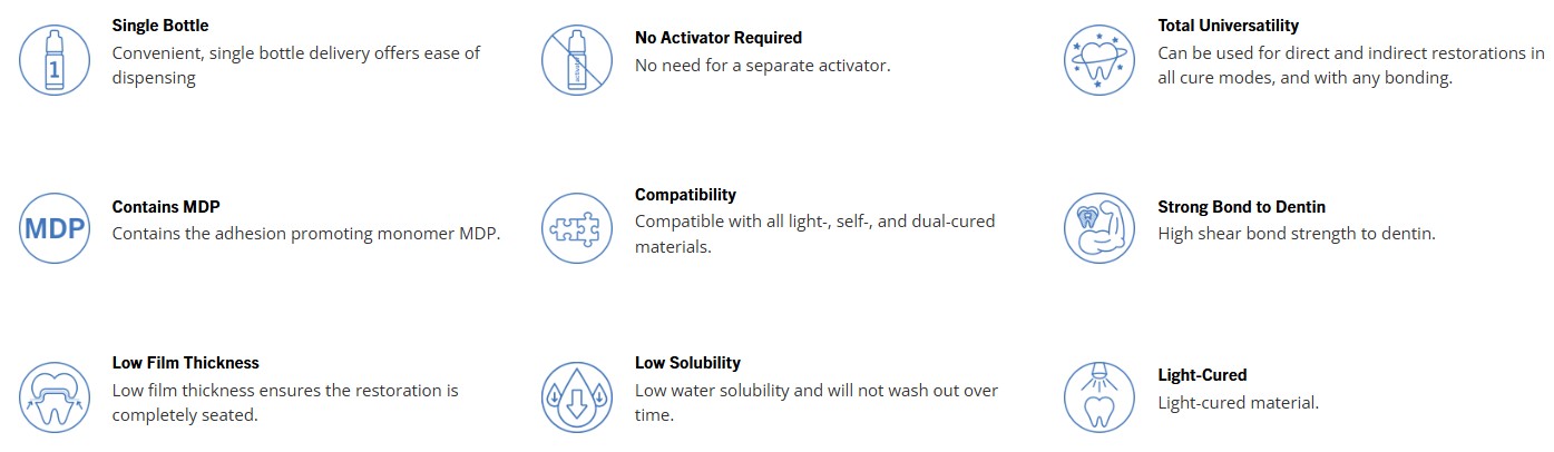 It offers the flexibility to be used for total-, self-, and selective-etch procedures and its ease of use leads to virtually no post-operative sensitivity.