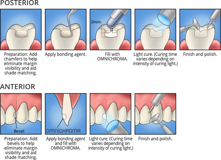 OMNICHROMA follows a standard, easy-to-use procedure for most cases. While opaque-white before curing, OMNICHROMA becomes natural in appearance and matches the color of the surrounding tooth after light curing.