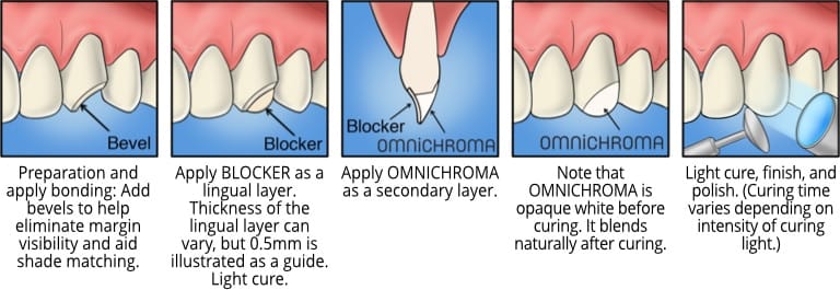 For use with large and extensive anterior cases, Tokuyama offers OMNICHROMA BLOCKER, a supplementary material to be used in conjunction with OMNICHROMA for the direct restoration of extensive Class III and IV cavities.