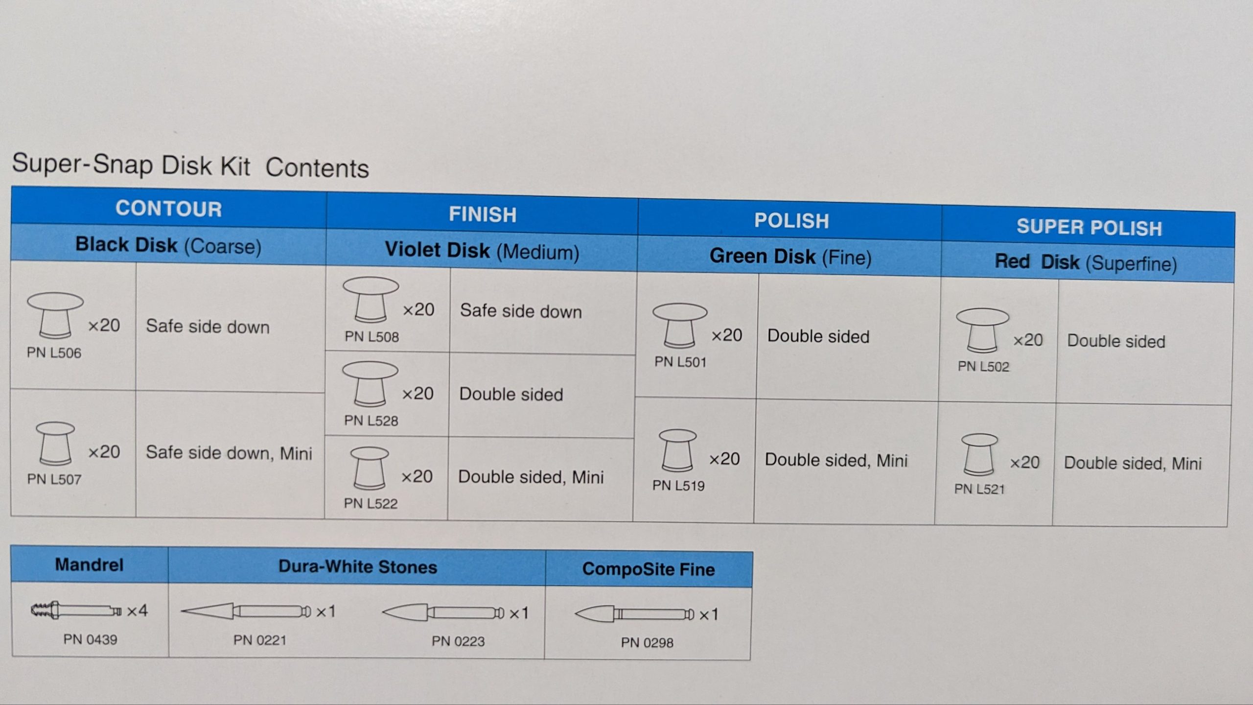 A comprehensive disposable disk system for fast, efficient, safe finishing and polishing of all direct aesthetic restorative materials.