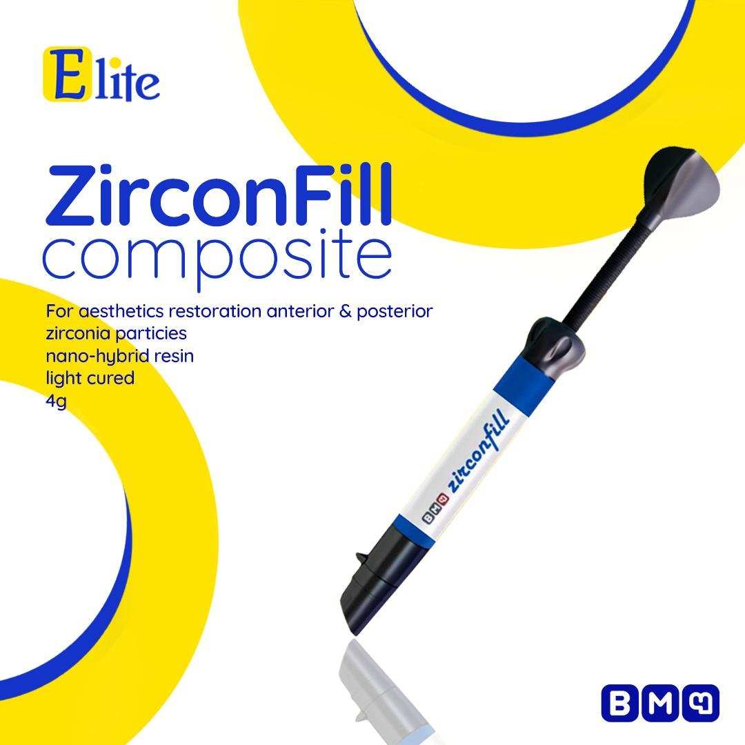Zirconfill is a light-curing, radiopaque nanohybrid composite resin developed for restorations for anterior and posterior teeth with a high inorganic filler content, mainly made up of zirconia/silica particles.